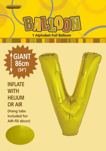 Gold "V" Alphabet Foil Balloon 86cm (34")