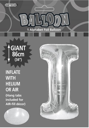 Silver "I" Alphabet Foil Balloon 86cm (34")