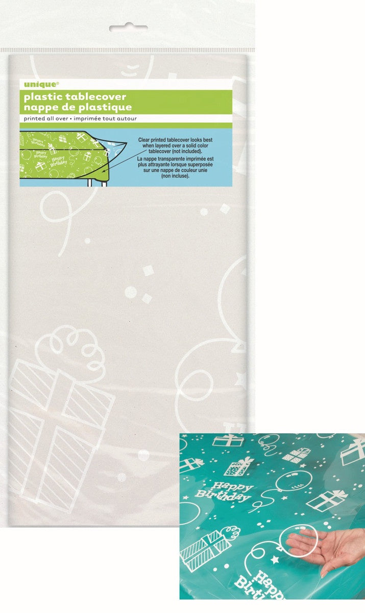 HAPPY BIRTHDAY CLEAR TABLECOVER RECTANGLE 137CM X 274CM (54" X 108")