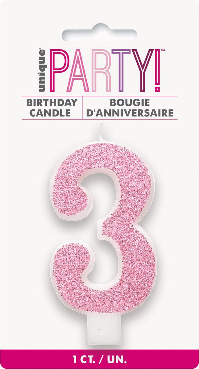 NUMERAL CANDLE 3 - GLITTER PINK