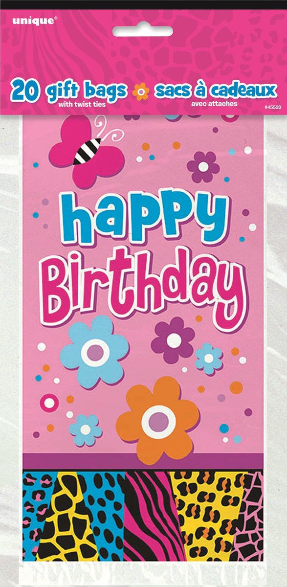 WILD BIRTHDAY 20 PRINTED CELLO BAGS 28CM H X 13CM W (11" X 5")