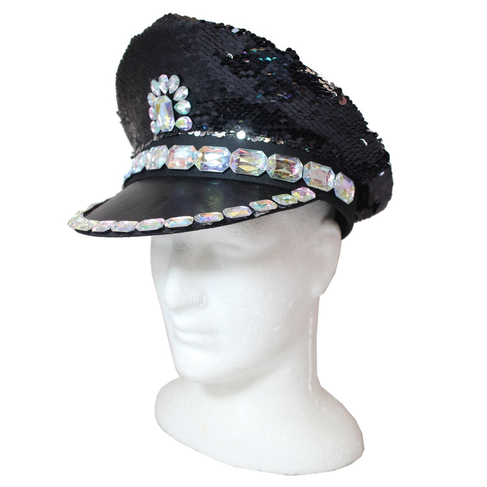BLACK RHINSTONE/SEQUIN POLICE HAT