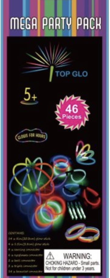 This fabulous glow mega party pack contains 46 glow pieces to create the ultimate glow party experience!