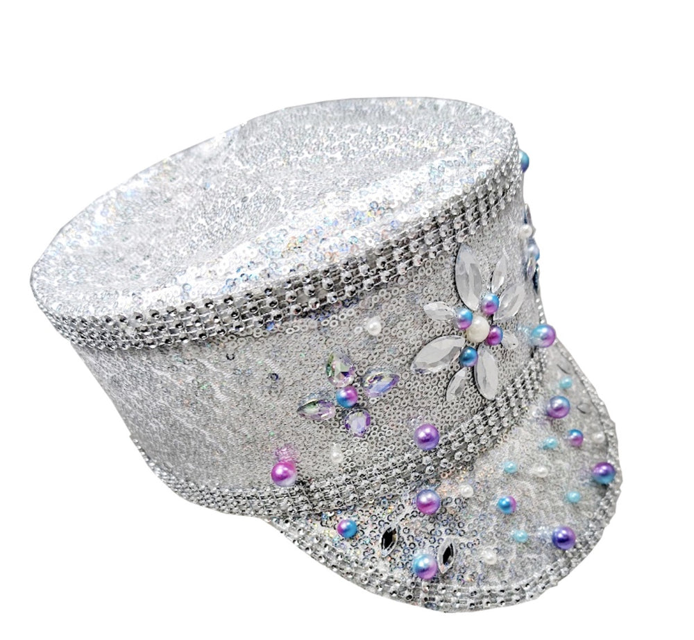 SILVER FESTIVAL CAP W/ CRYSTALS & PEARLS