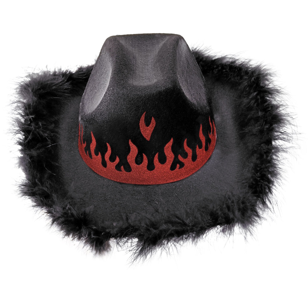 BLACK FEASTIVAL HAT W/RED GLITTER FLAME DESIGN