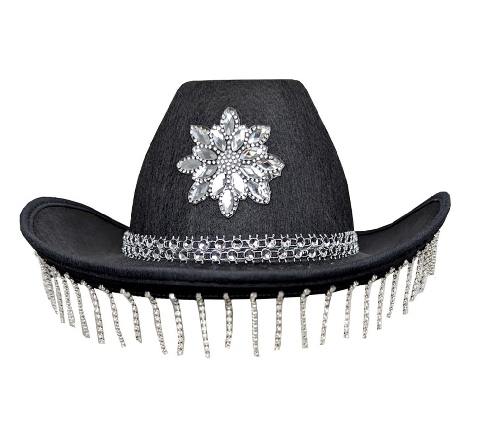 BLACK FESTIVAL W/ DIAMANTE STRANDS & CRYSTAL DECOR
