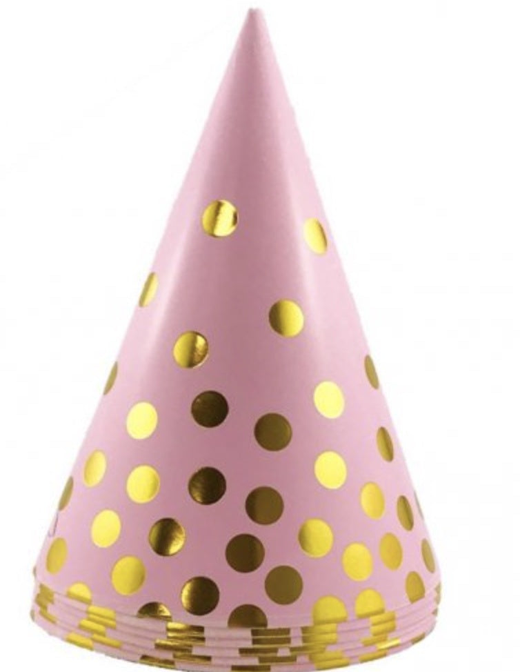 Cone Hats 150mm Pink/Gold Hot Stamping PK6