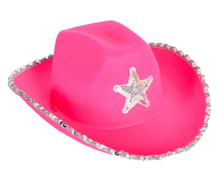 Cowboy Hat with sequin rim and Star (Hot Pink)