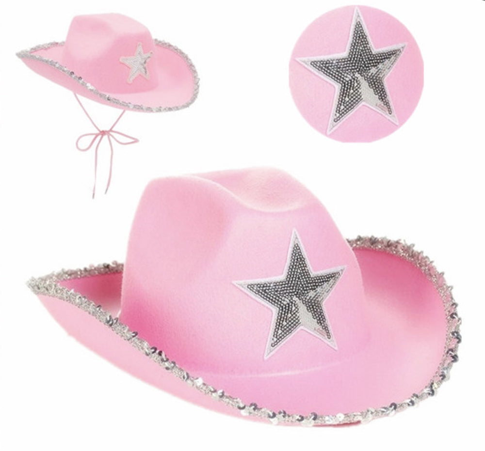 COWBOY SEUINS PINK PARTY HAT