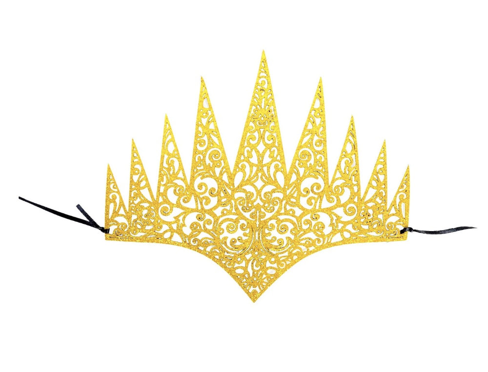 Add some sparkle to your royal style with our Deluxe Gold Glitter Crown! Featuring shiny metallic gold glitter and an intricate design, this crown is the perfect accessory for any queen or princess dress up. Perfect for book week or any regal event