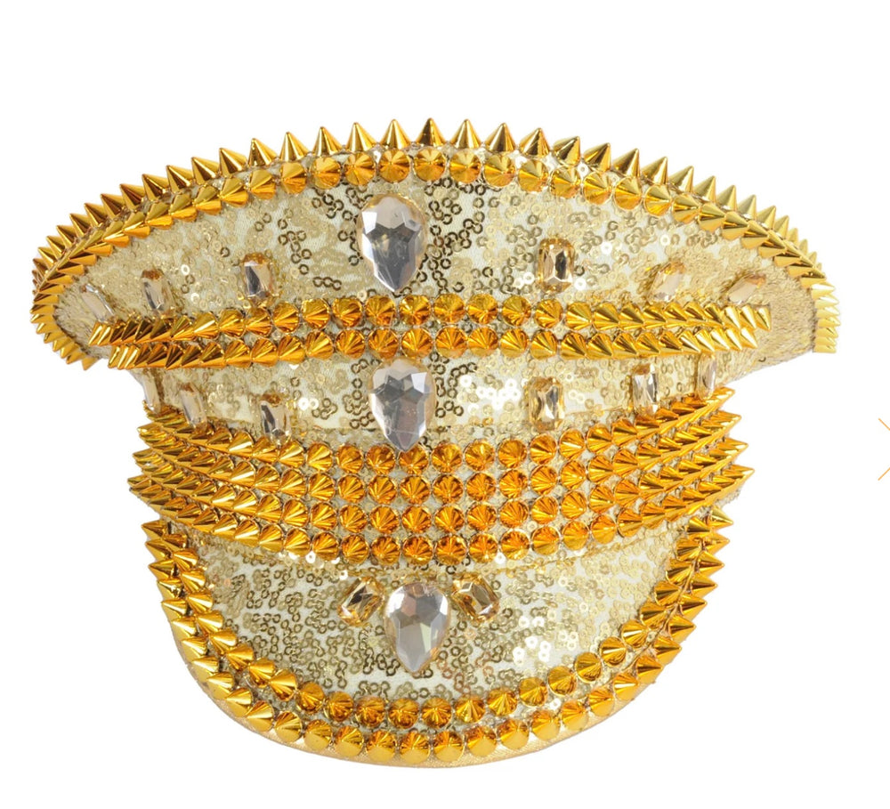 DELUXE GOLD STUDDED SEQUIN FESTIVAL CAP
