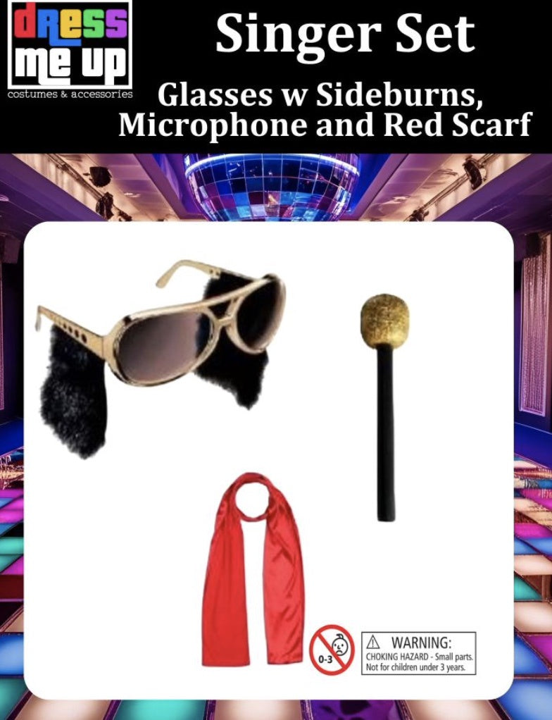 GLASSES, SCARF, SIDE BURNS AND MICROPHONE INCLUDED