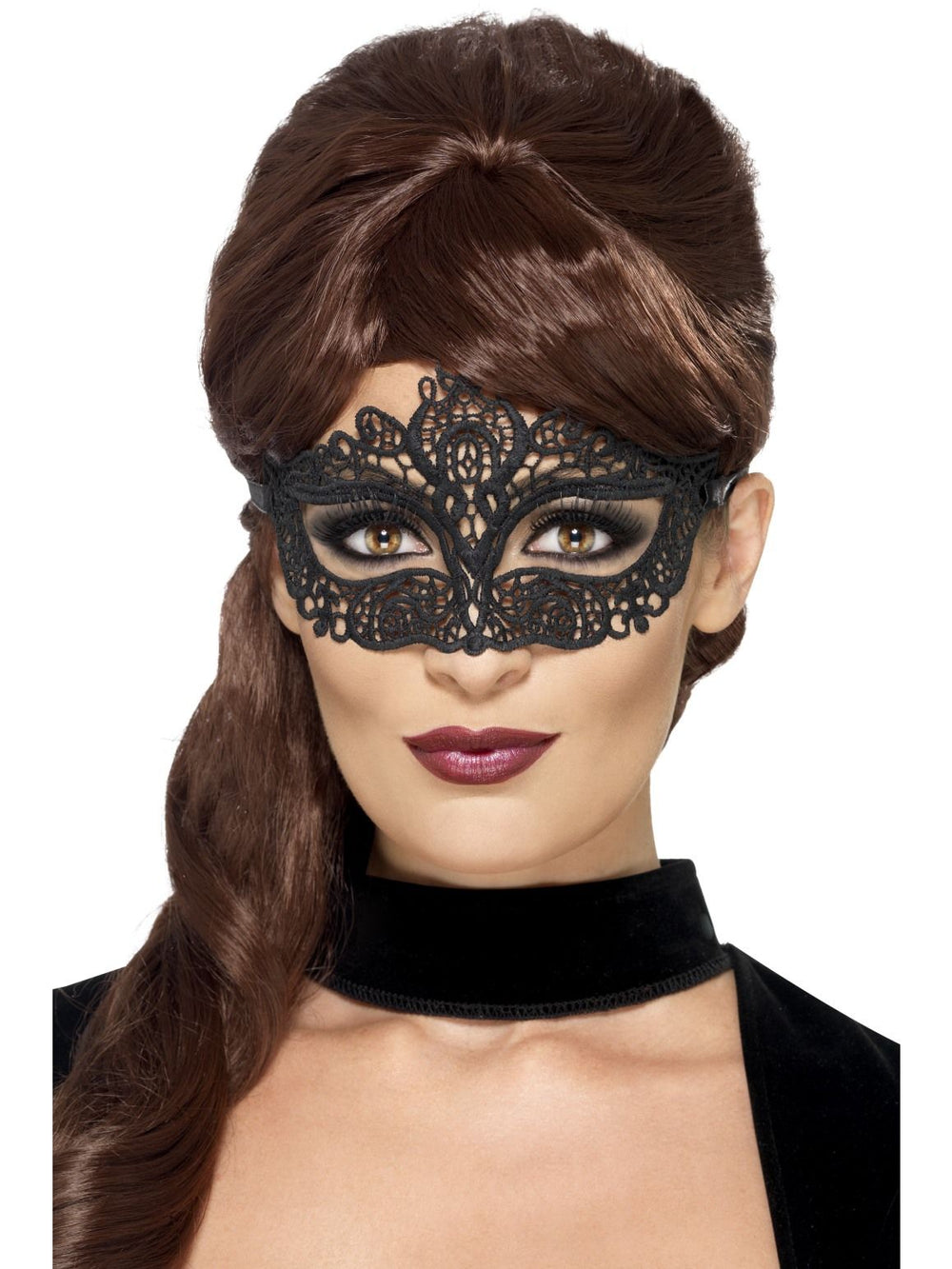 Our Carnival of the Damned collection has a great range of masquerade masks available to team up with any of our costumes. This mask is a Black lace embroidered filigree eyemask with fantastic, elegant detailing.
