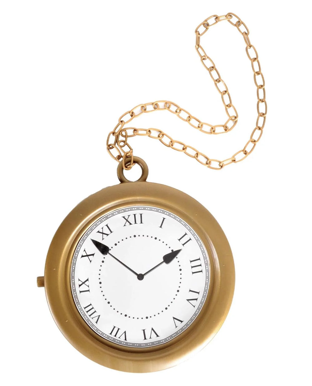 Stay stylishly on time (or fashionably late) with our Giant Clock Necklace! This oversized pocket watch prop measures a generous 20cm in diameter and comes in a striking gold colour. Perfect for whimsical dress up parties or adding a touch of fantasy to your Book Week look. Comes with a chunky chain for easy wearing. Tick tock, don't miss out on this quirky accessory!