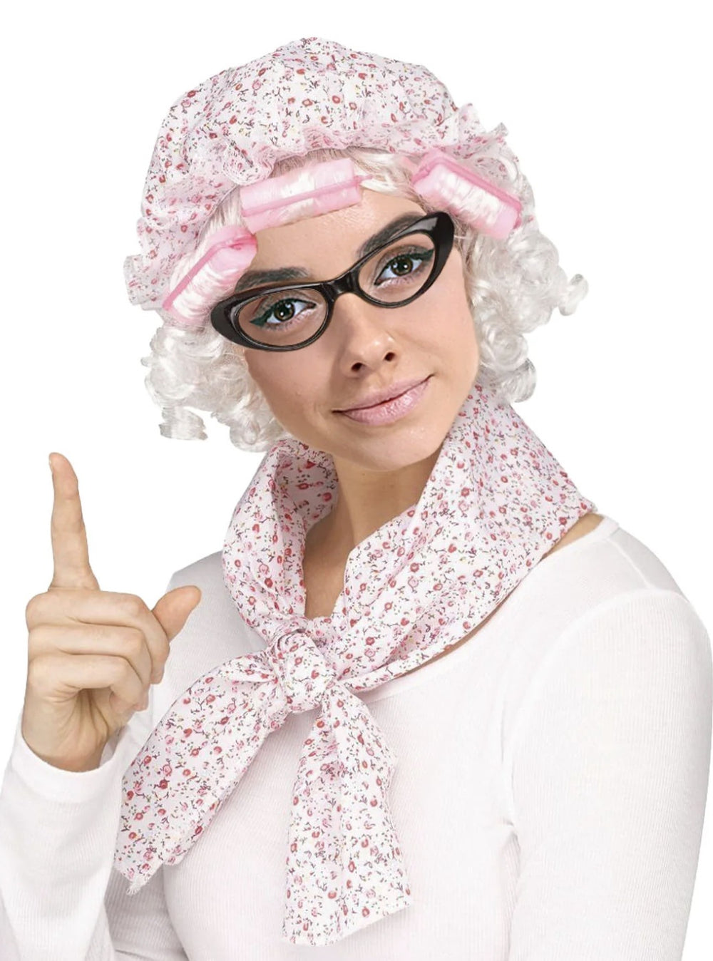 Old Lady Grandma Costume Accessory Kit is an easy but brilliant dress up idea. You can look the part of an elderly woman with these costume accessories. Great for both Kids and Adults to wear!
