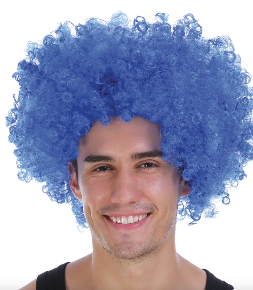Get your funk on with this Mens Afro Wig in blue! You'll be grooving all night long and shaken those curls on the dance floor. Great for completing your clown costume or for crazy hair day or for any fancy dress party!
