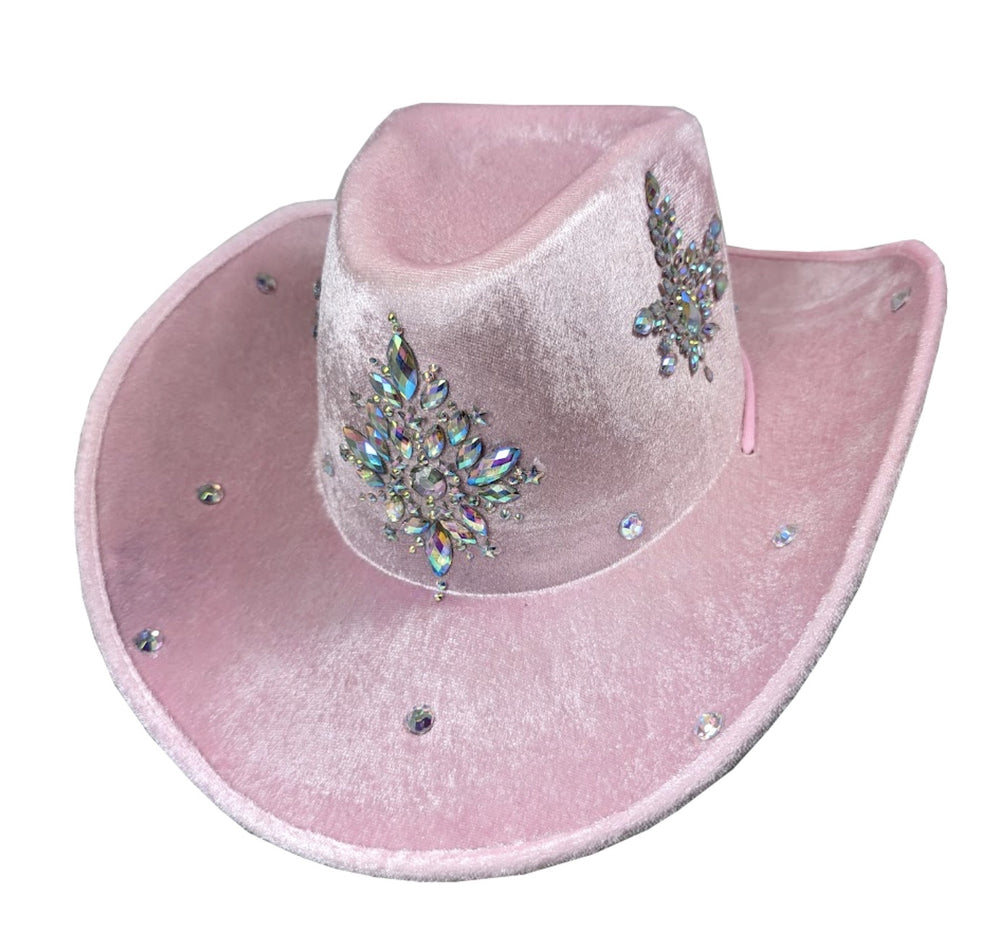 PINK COWBOY HAT W/ CENTRE CRSTAL DECORS & SCATTERED CRYSTALS