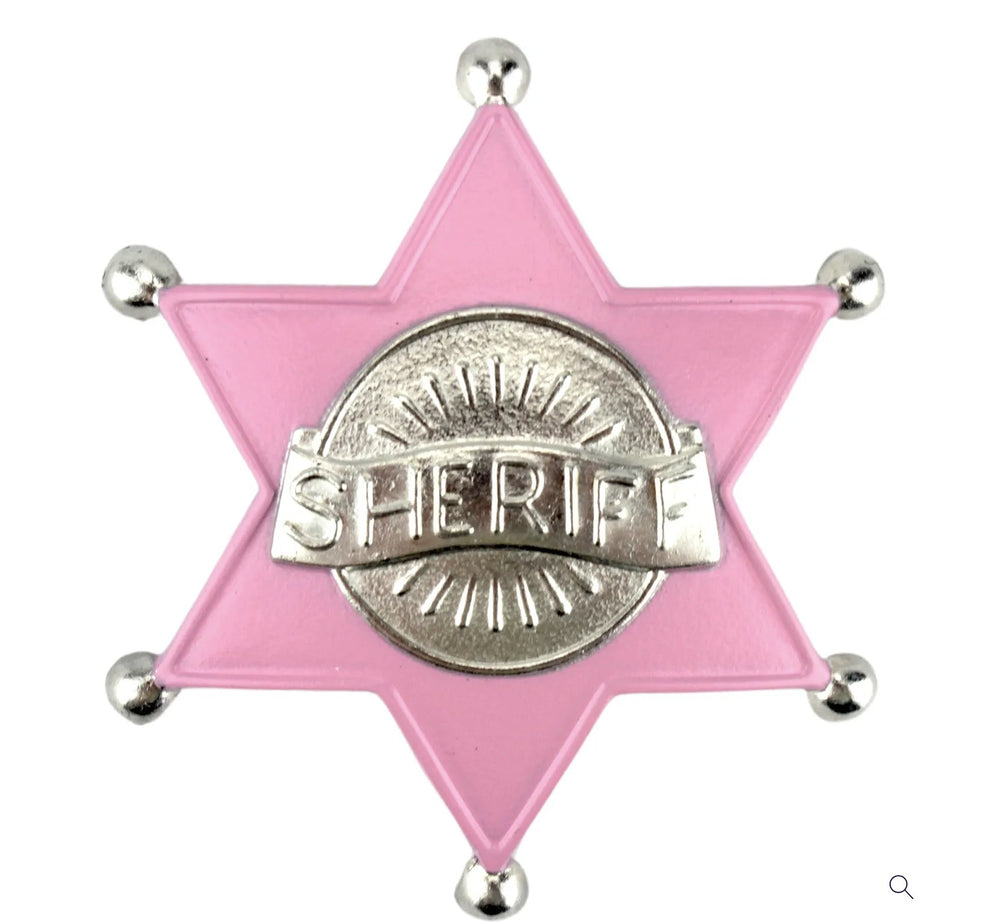 Yee-haw! Show everyone who's boss in the 'Wild Wild West' with this playful pink and silver sheriff badge! This badge pin is the perfect costume accessory to wear at your Cowgirl Western themed party.