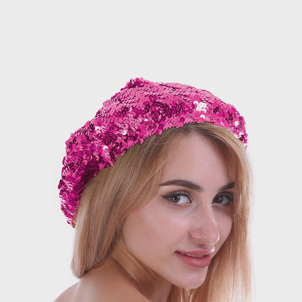 Leave a bit of sparkle everywhere you go in our Sequin Beret Hat in pink. Dance the night away or just just sparkle during the day!
