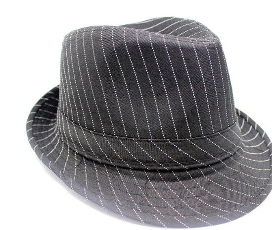Trilby Hat with Stripe Design (Black)