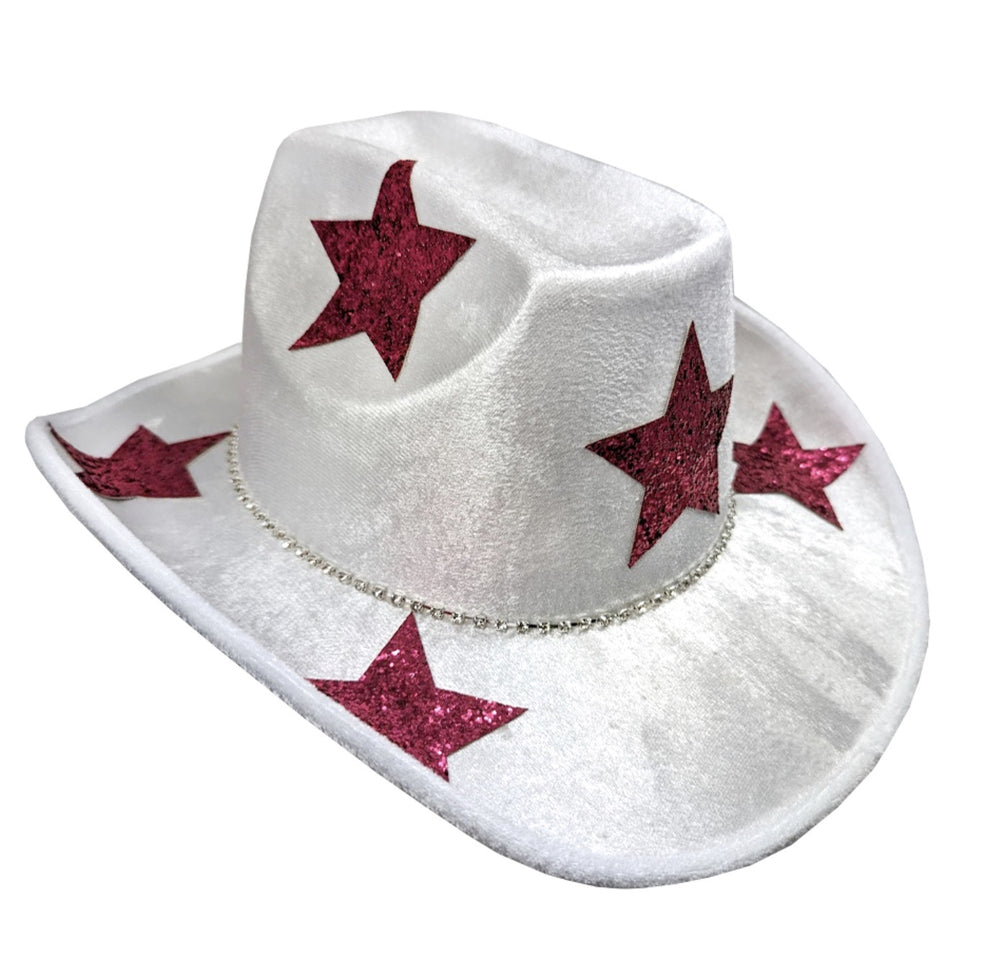 WHITE FESTIVAL HAT W/ PINK METALLIC STARS