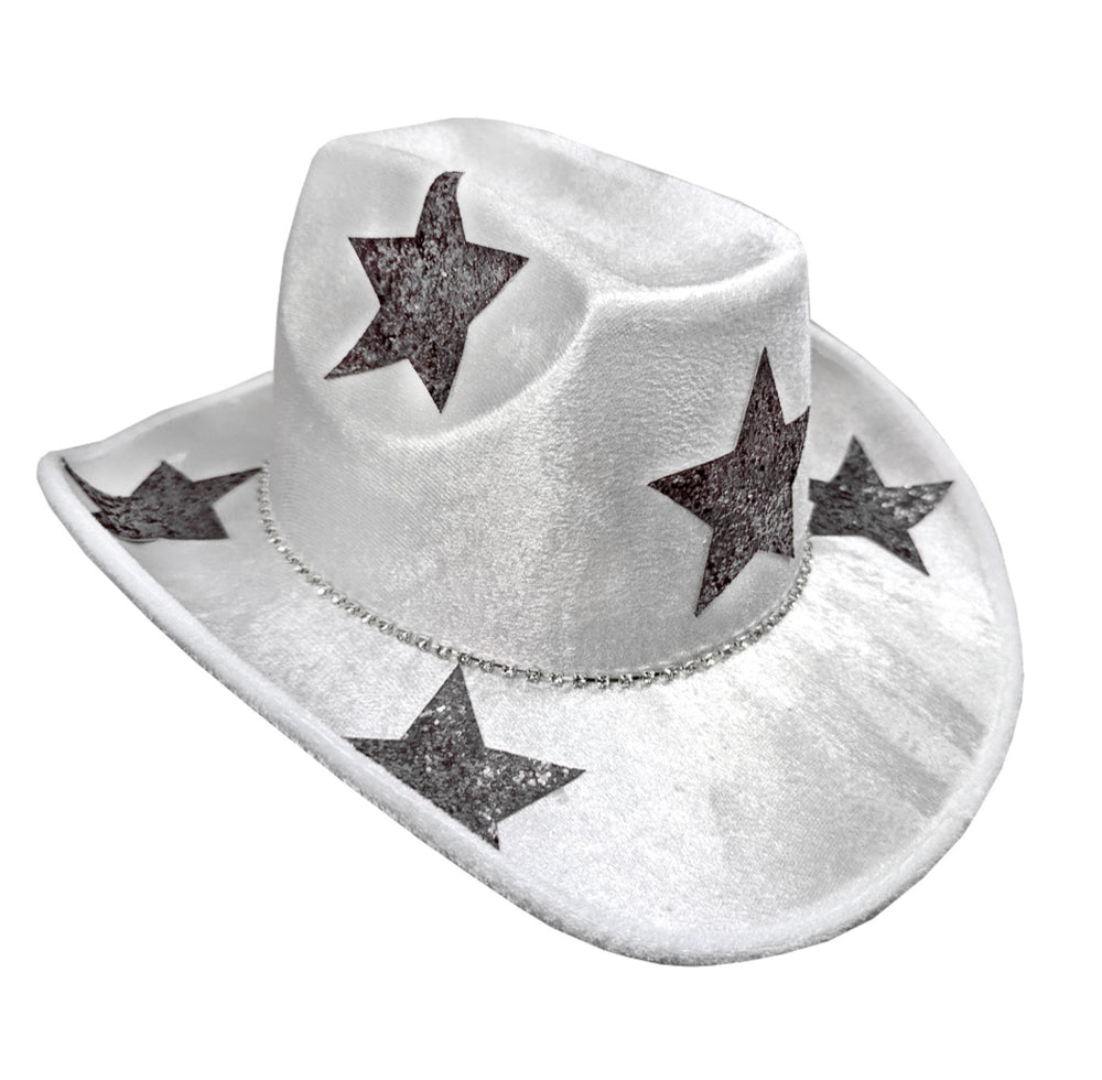 WHITE FESTIVAL HAT W/SILVER METALLIC STARS