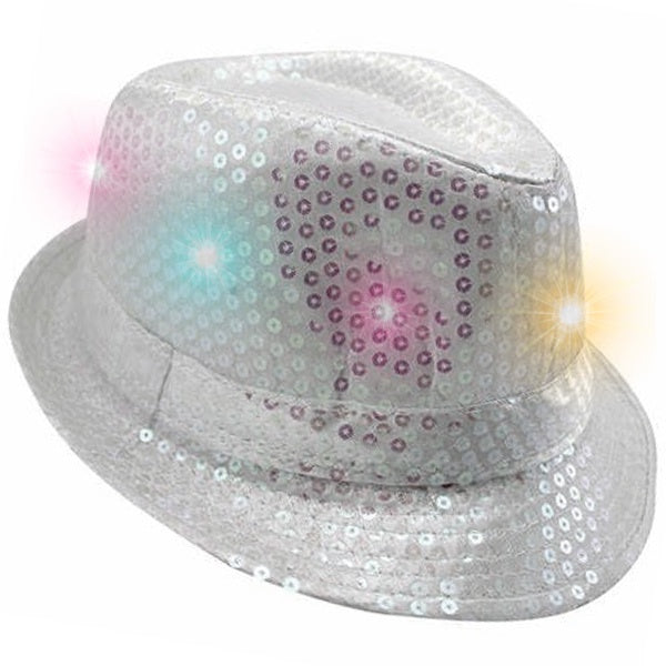 White Sequin Fedora w/Lights