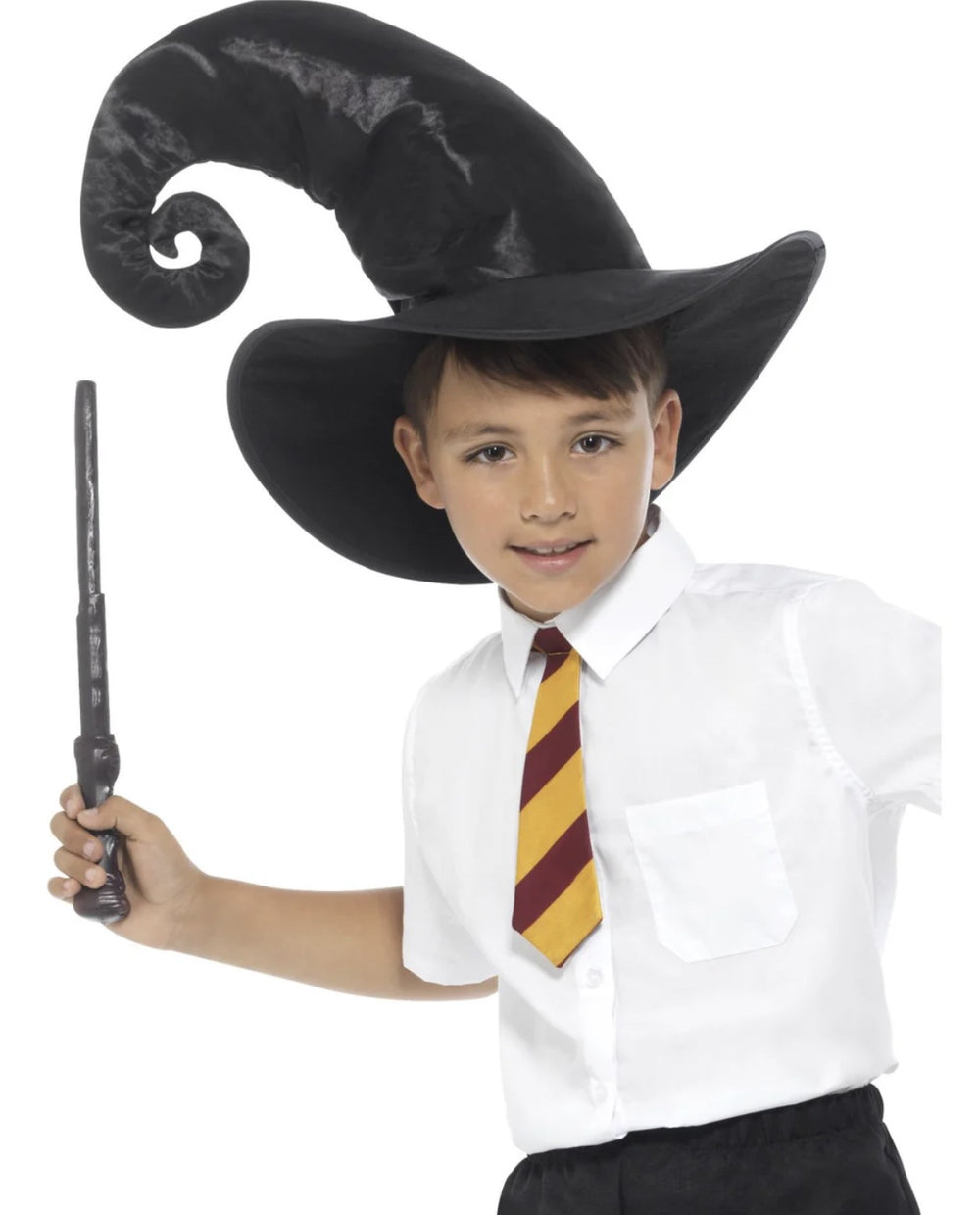 Take your spells to the next level with our children's Wizard Kit. It includes the tie, hat and wand and is available in one size.