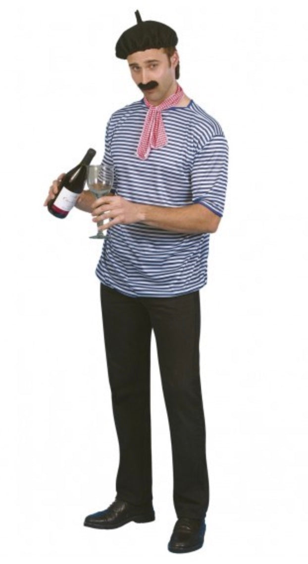 French Man Set, Black, with T-shirt, Beret, Scarf and Moustache