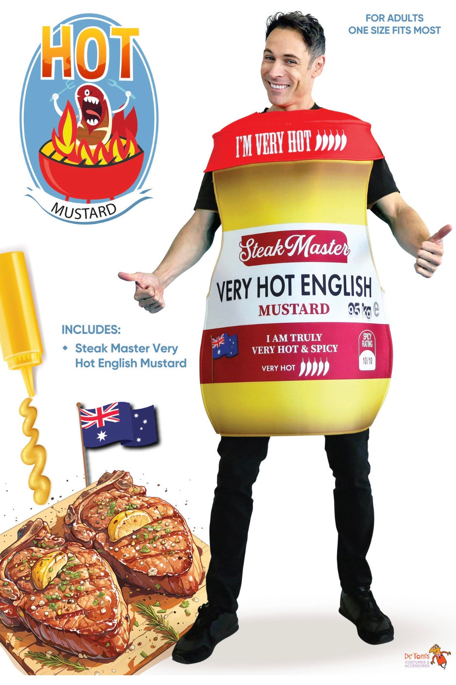 Turn up the heat and let your personality sizzle with the Dr Toms Hot Mustard Sauce novelty costume! Whether you're heading to a costume party, a themed event, or just want to bring some unexpected flavour to your next gathering, this food-themed outfit is sure to get everyone talking. It's not just a costume—it's an invitation to embrace your playful side, spark laughter, and create unforgettable moments. Get ready to be the life of the party and leave a lasting impression—because when you dress in Hot Mustard, you’re serving up smiles all night long!
