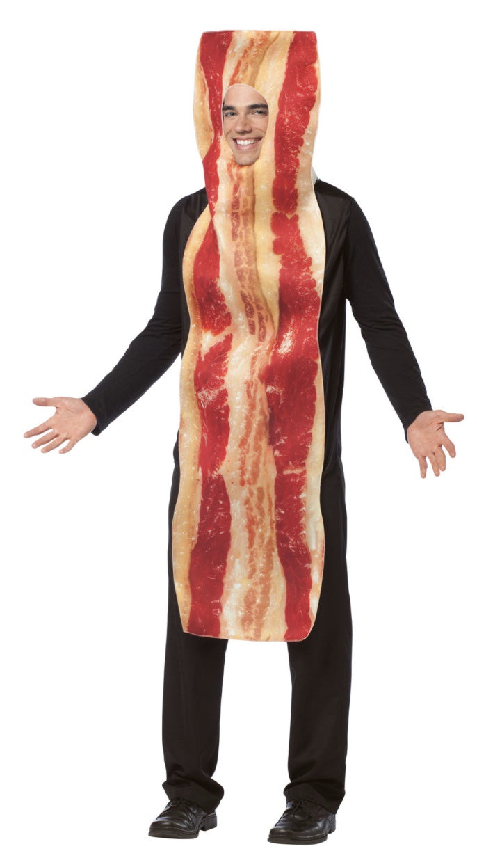 - Easy, fun costume - just slip bacon slice tunic over your own shirt/pants