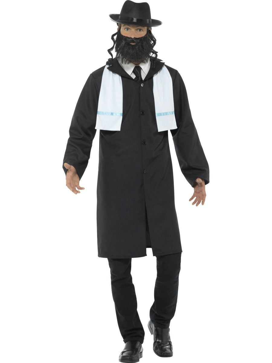 Rabbi Costume, Black, with Jacket, Scarf, Hat & Beard