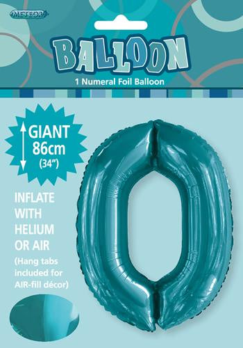 Caribbean Teal "0" Numeral Foil Balloon 86cm (34")