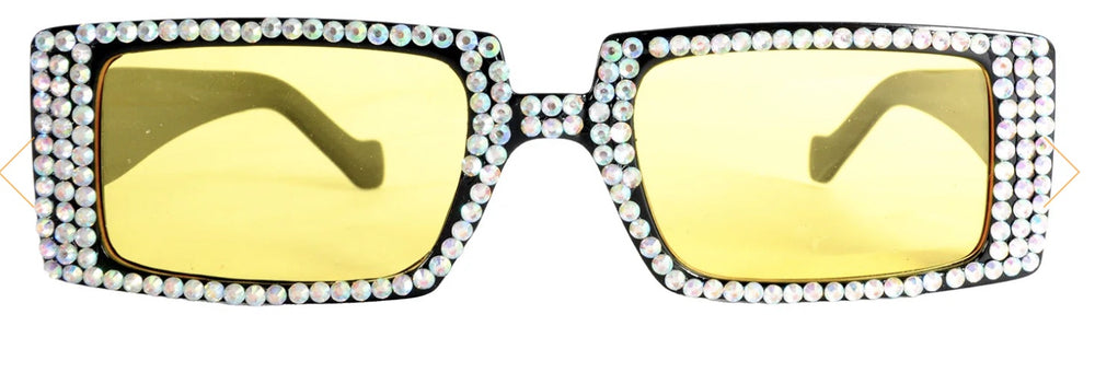 DIAMANTÉ RECTANGLE PARTY GLASSES WITH YELLOW LENS