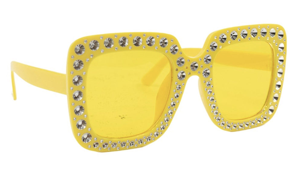 YELLOW BLINGED SQUARE PARTY GLASSES