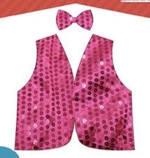 Adult Sequin Bow Tie & Vest Set (Hot Pink)