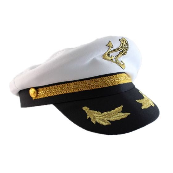 An essential part of every captain's uniform is the hat so check out our Admiral Captain Hat. Our accessory features a traditional white navy captains hat with a black visor with gold leaf imagery,  gold stitching indicating his/her rank and a black and gold navy insignia! Check out our range of sailor costumes and accessories to complete the look! Everyone likes a man in uniform!