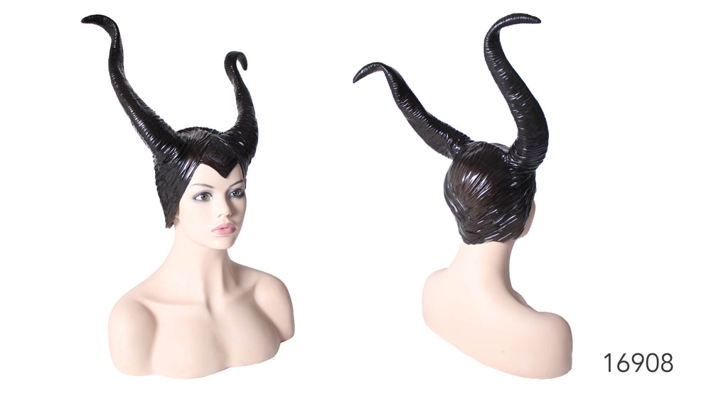 Get your hands on these iconic Maleficent Classic Horns Headpiece to complete your villainous Maleficent costume for your next convention, Halloween or fancy dress party! The horns headpiece is styled simalarly to the one in the Maleficent movie featuring two upright black twisted horns protruding from a black cap base.