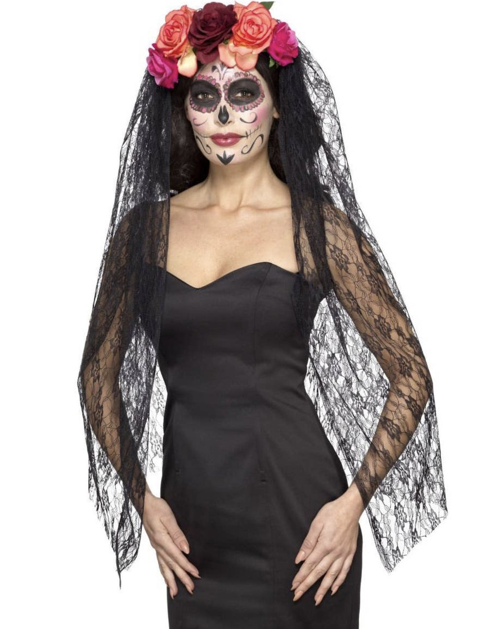 Halloween is right around the corner and it's time to start thinking about your costume. This floral veil headband is sure to add a touch of dark dead to your outfit! This versatile Costume Headband can be paired with a Day Of The Dead fancy dress outfit for a truly spooky look!