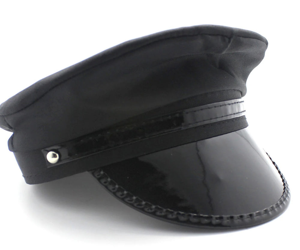 Complete your look with our Black Chauffeur Hat, the perfect accessory to command attention at any event!