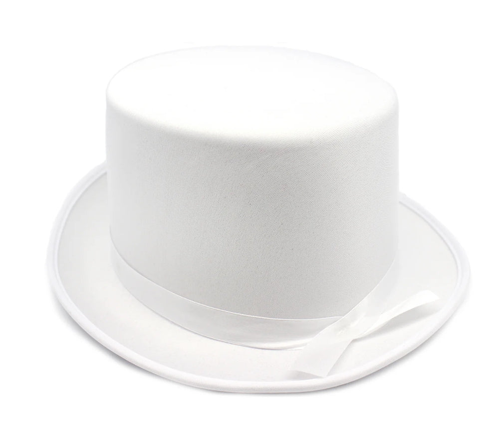Our White Satin Top Hat is perfect for all those ladies and gents of class. Use it to compliment your tux or suit for a fancy night out.