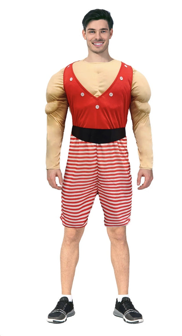 Step right up and channel your inner carnival strongman with this gloriously retro Adult Strong Man Costume! Perfect for throwing it back to the golden age of circus acts and colonial-era carnival fairs, this muscled marvel will have everyone flexing with laughter at your next themed party. Embrace the nostalgia of vintage fairground entertainment with a costume that celebrates the showmanship and spectacle of yesteryear. Whether you're recreating a classic circus performance or bringing old-time carnival vibes to life, this bold ensemble delivers authentic period charm with a playful twist. Get ready to steal the spotlight and remind everyone why strongmen were the stars of the show!