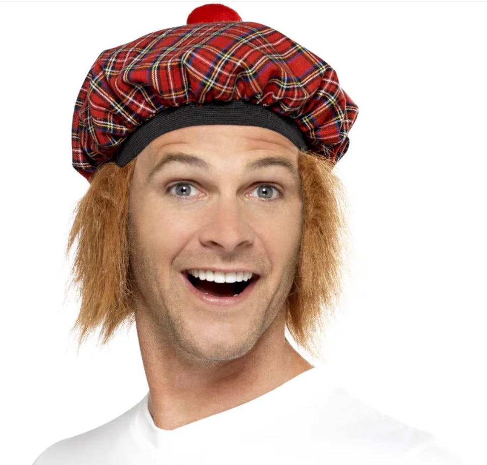Celebrate St Andrews Day with the Tam O' Shanter Tartan Hat. The tartan design comes with attached pom pom and ginger hair.