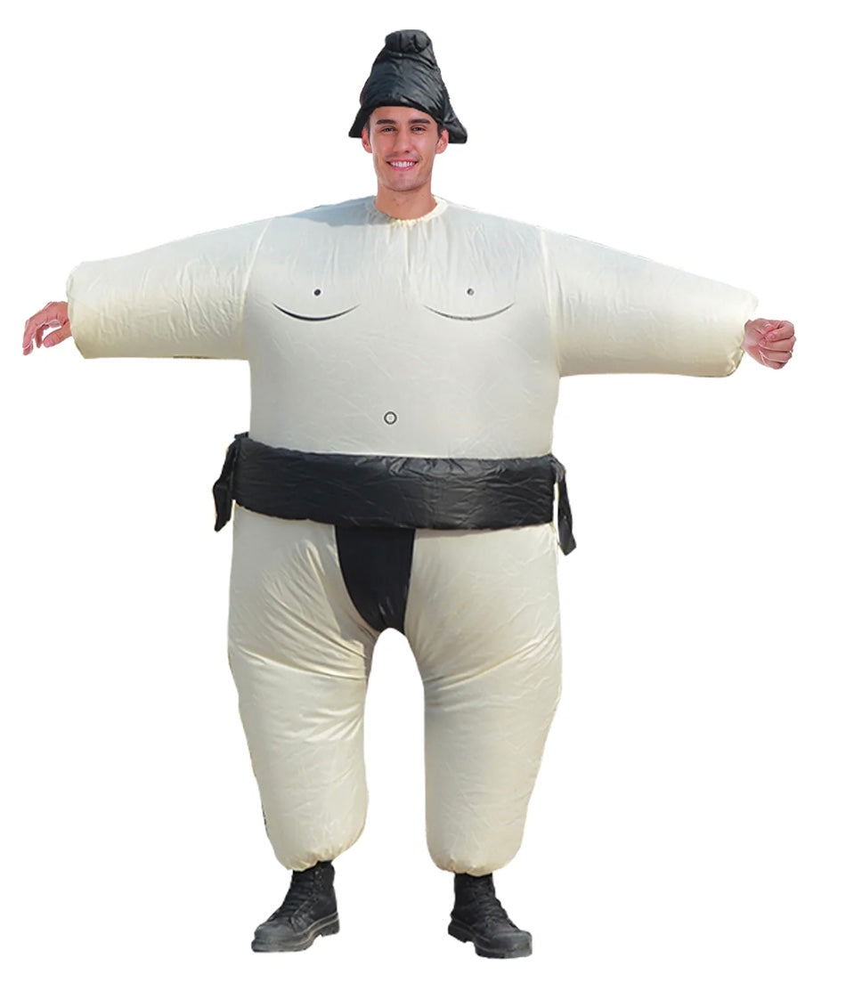 When you enter the room in this hilarious Inflatable Sumo Suit Costume all eyes will certainly be on you. It even has a special hat and black loincloth for a totally credible Japanese sumo wrestler costume. With fast battery operated inflation, you won't even have to worry about the suit deflating or finding someone to blow you up. You just might need some help getting through the door if they can stop laughing!