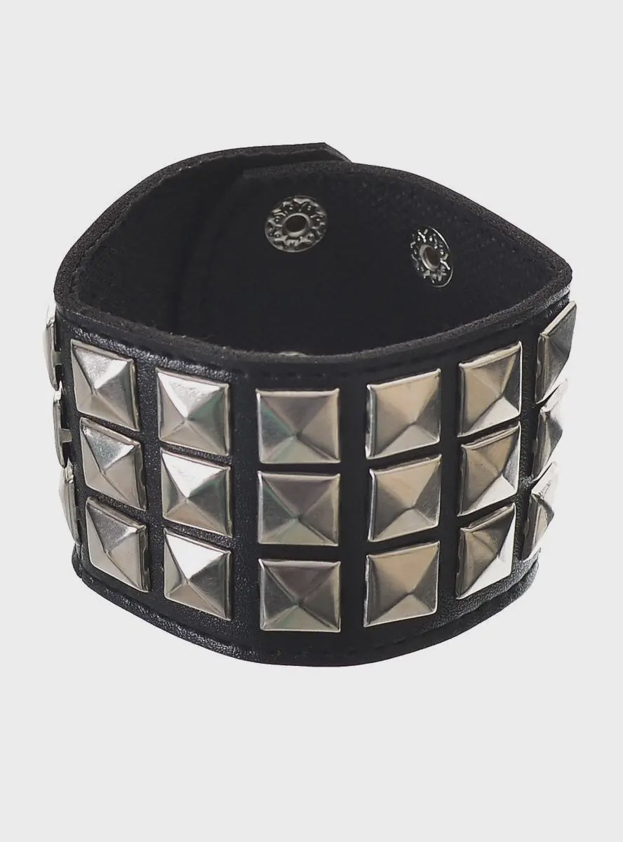 Step onto the scene and show off your attitude when you wear all things that give you a punk look including this black leather look studded bracelet. You'll be ready to head bang to some rock music wearing your punk costume with some accessories like this studded wrist cuff