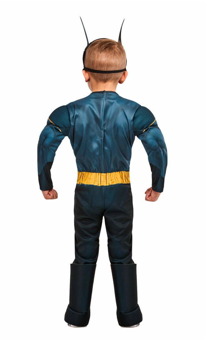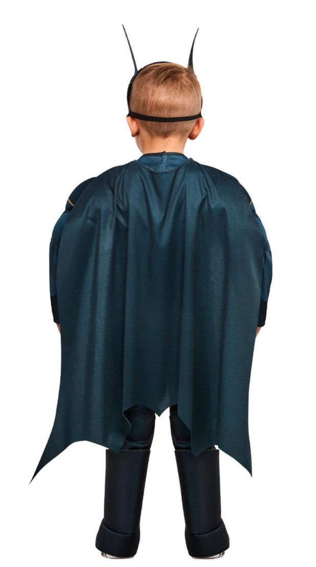 - Deluxe, digitally printed jumpsuit with fibre filled muscle chest and arms and iconic Batman logo at chest