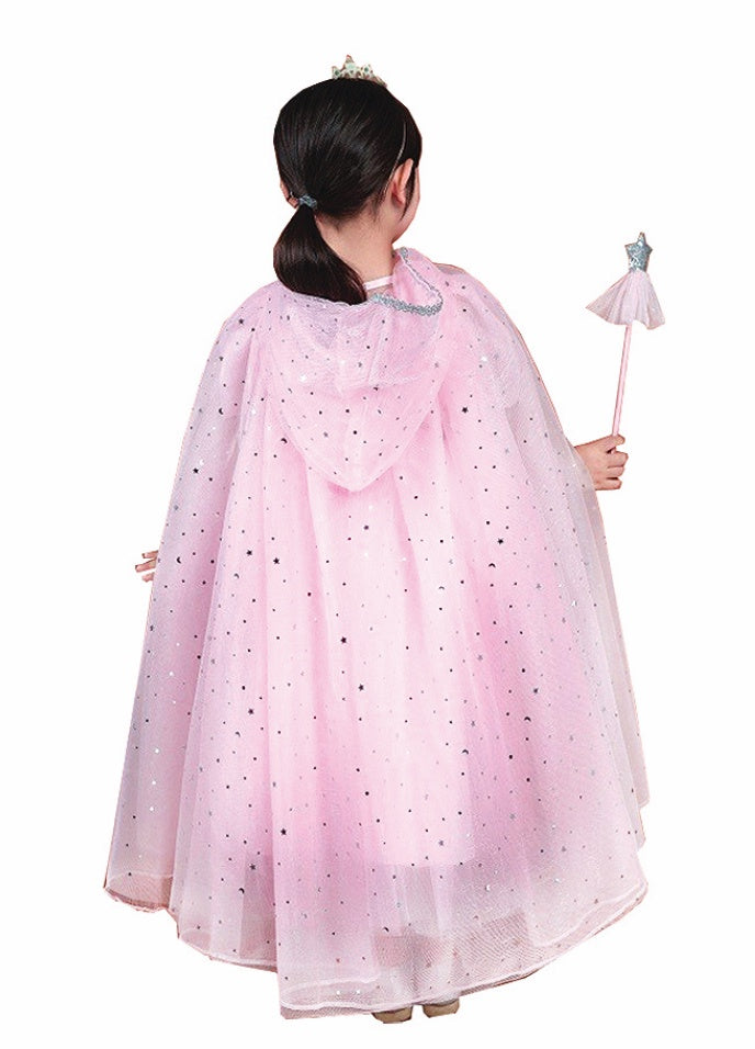PRETTY PINK PRINCESS CAPEW/ SILVER STARS , CAPE, WAND