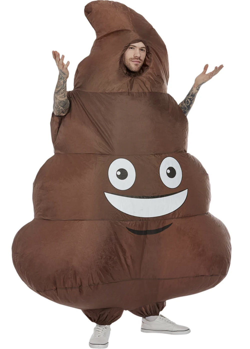 Okay, hands up who doesn't want to get dressed up in a giant Inflatable Poop Costume - that's nobody, right? Everybody wants to get in on the fun of this steaming pile of fabulous fancy dress and there's nothing quite like rocking up to a party dressed as a big brown poo for grabbing some attention! The all-in-one inflatable suit has a built-in fan to keep the wearer nice and squishy, and elasticated ankles help to keep the air inside. A face hole and arm holes mean there's no danger of missing out on any beers or burgers that come your way - and they make it easy to grab unsuspecting passers-by for a face-ful of curly-squirly love! The big smiley emoji-style face printed on the front adds the perfect finishing touch to a perfectly pooper-dooper costume!