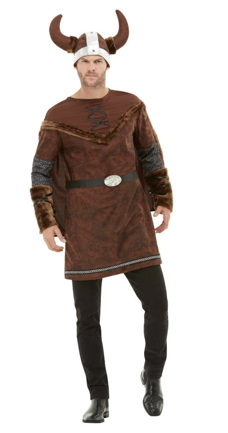 Deluxe Viking Barbarian Costume, Brown, with Tunic, Cape & Helmet