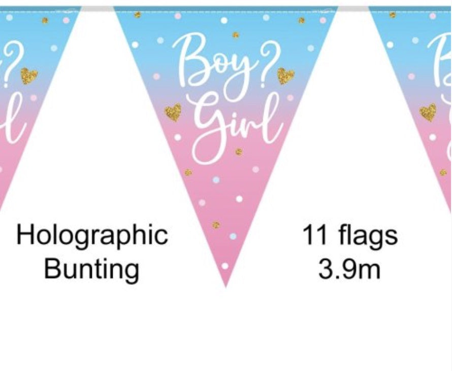 Bunting Boy or Girl Gender Reveal Holographic 3.9 meter